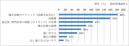 何といっても治療技術の確かな医師が第一であり、3位、5位にあがっている「認定医・専門医等の資格」「矯正治療の経歴」も、それを知るための手段といえるかもしれません。